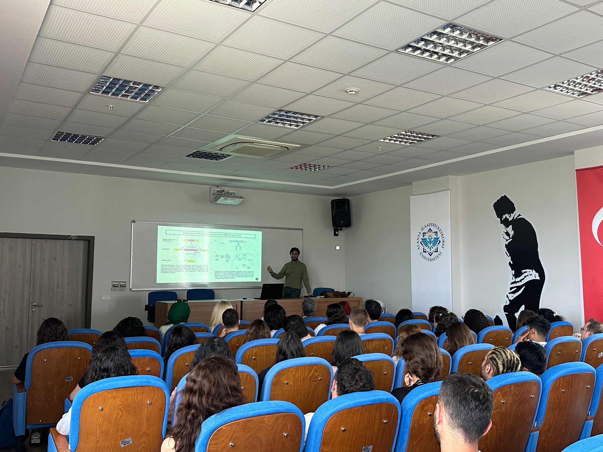 Bölümümüz Genetik ve Bilim öğrenci kulübü tarafından organize edilen Alan Tanıtım Günleri kapsamında ‘NANOBİYOTEKNOLOJİ’ konulu ilk seminer, Dr. Öğr. Üyesi Özgür ÖZTÜRK tarafından gerçekleştirilmiştir. Seminere fakültemiz Dekanı Prof. Dr. Erhan CENGİZ, Dekan Yardımcısı Doç. Dr. Burak SALTUK, bölümümüz öğretim üyeleri ve çok sayıda öğrencimiz katılmıştır. Hocamıza katkılarından dolayı teşekkür ederiz.